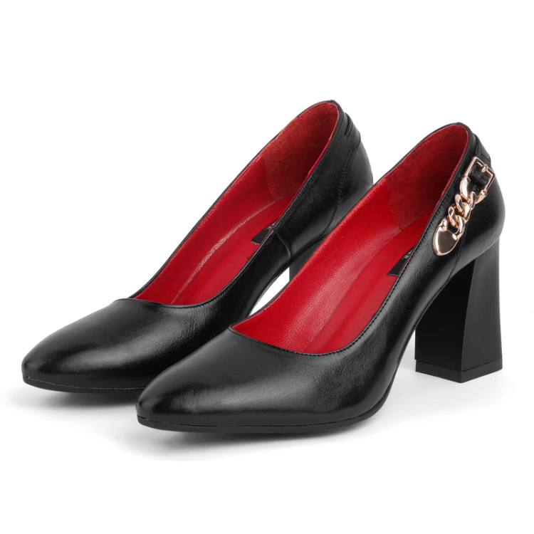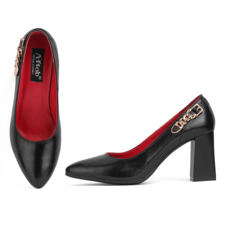 یکی از بارزترین مزایای کفش های پاشنه بلند چرمی این است که به شما اجازه می دهد بلندتر به نظر برسید؛ خصوصا برای خانمهایی که قد متوسط و یا کوتاه تری دارند، پوشیدن کفش پاشنه بلند حس خوب اعتماد به نفس را تقویت میکند.برای اینکه خیال شما بابت کفشی که به پا میکنید راحت باشد و مطمئن باشید که میتوانید به راحتی در محل کار و مهمانی در رفت و آمد باشید، میتوانید کفش چرم را انتخاب کنید. زیبایی که کفش چرم دارد قابل مقایسه با دیگر کفشها نیست افرادی که مشاغلی دارند که لازم است برای مدت طولانی روی پا باشند یا به کفش هایی نیاز دارند که راحتی و محافظت بیشتری از پاهایشان داشته باشد، اغلب باید کفش های چرمی بپوشند کفش چرم رطوبت تولید شده توسط پا را جذب می کند و بنابراین آب و هوای دلپذیر کفش را تضمین می کند. وقتی که این کفش را میپوشید طرح رویه ساده با بافت چرم گاوی حس شیک بودن در عین سادگی را به شما منتقل میکند. زیره و قالب کفش به گونهای طراحی شده که در حین استفاده پای شما را اذیت نکند .