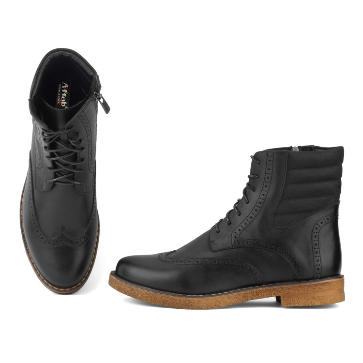 بوت ها و نیم بوتها همیشه از محبوب تربن و پرطرفدارترین کفش ها در فصل پاییز و زمستان است.شاید یک کفش مناسب مهم ترین بخش یک استایل زمستانی باشد.این مدل از چرم 100 % طبیعی (گاوی) از نوع با کیفیت و مرغوب ساخته شده است که ماندگاری و دوام بالایی دارد . کفی این نیم بوت از جنس چرم طبیعی ، آنتی باکتریال که مانع از تعریق و بو گرفتن پامیشود زیرا چرم قابلیت تنفس دارد و در عین حال عایق است، به این معنی که چرم گرما را حفظ می کند اما اجازه میدهد تا بخار رطوبت در حین پوشیدن از آن خارج شود. زیره این کفش از بهترین مواد اولیه است که با خاصیت سبک و منعطف بودن ، عایق حرارتی بالایی در برابر سرما می باشد. این نیم بوت بسیار راحت است و با استفاده چندین ساعته در طول روز حس خستگی را به پا منتقل نمیشود. اگر بدنبال یک نیم بوت گرم و راحت برای فصل پاییز و زمستان خود هستید این مدل گزینه بسیار مناسبی می باشد.