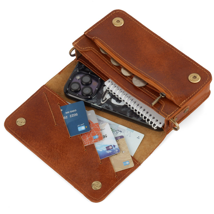 دارای یک محفظه سه لت داخلی یک فضای زیپدار داخلی دارای فضای کارت اعتباری بعلت ضخامت چرم شتر دارای آستر نمی باشد و از چرم یک لایه تهیه شده است . بعلت طبیعت چرم شتر ممکن است کمی تغییر رنگ با عکس اصلی وجود داشته باشد .