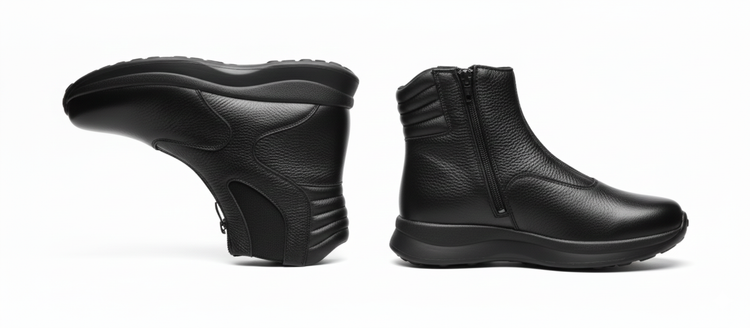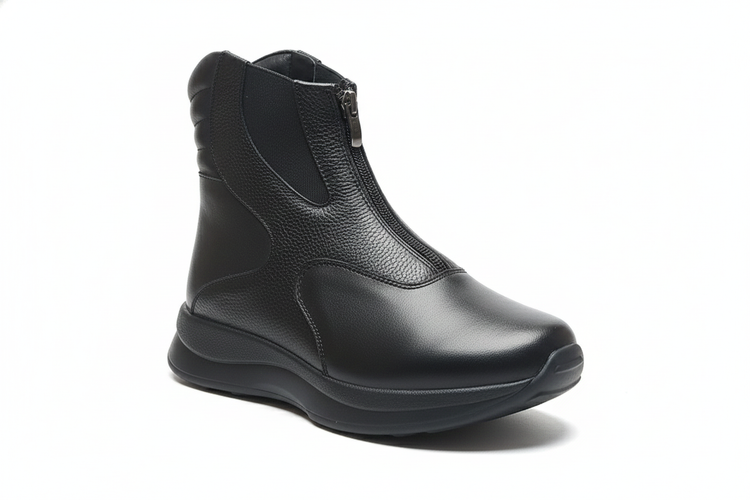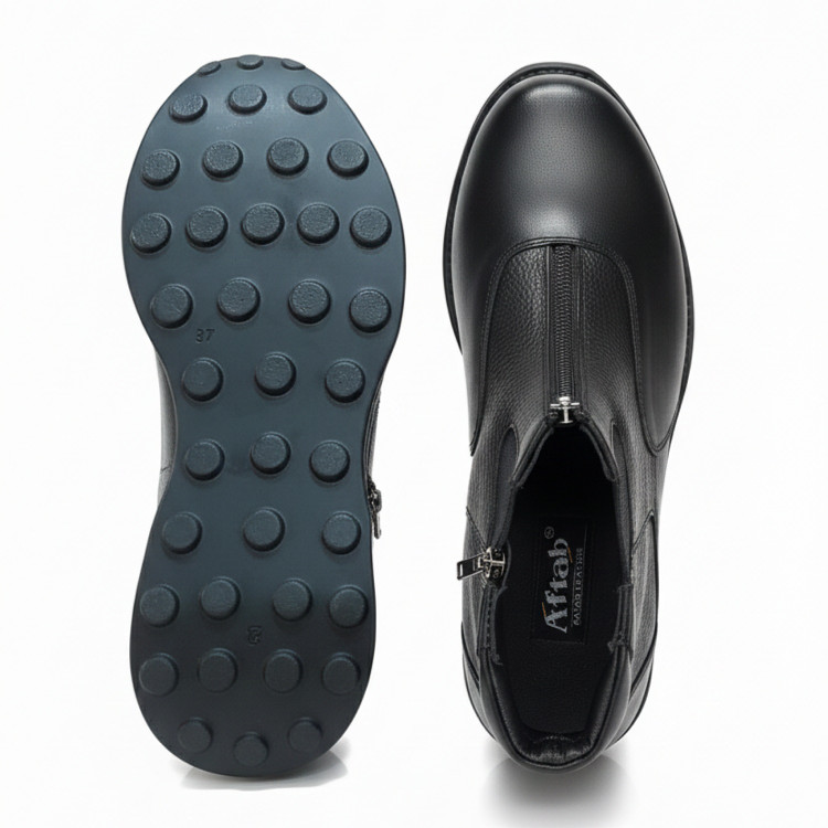 این نیمبوت زنانه با طراحی مدرن و خاص خود، ترکیبی از شیکپوشی و راحتی را ارائه میدهد و یک انتخاب عالی برای استایلهای پاییزی و زمستانی است.جنس رویه از چرم طبیعی گاوی مرغوب و نرم است که کیفیت و راحتی کفش را تضمین میکند با گذشت زمان انعطاف پذیرتر و همسان با قالب پای شما میشود و سالهای سال برای شما ماندگار استنحوه بسته شدن این نیمبوت، زیپ مرکزی آن است که علاوه بر کاربرد آسان برای پوشیدن و درآوردن، یک المان مدرن و جسورانه به طراحی بخشیده و کفش را از مدلهای کلاسیک متمایز میکندرنگ: کفش مشکی است که قابلیت ست شدن آن را با انواع لباسها (از جمله استایلهای شهری، کژوال و حتی نیمهرسمی) بسیار بالا میبرد.زیره به صورت پلتفرم (لژ یکسره) و نسبتاً ضخیم از جنس PU (پلی اورتان) بسیار سبک و راحت است و خاصیت ضد لغزش دارد.ارتفاع مناسبی دارد که هم استایل شما را زیباتر نشان میدهد و هم از پا در برابر سرمای زمین محافظت میکند.و به دلیل طراحی راحت و زیره طبی، برای استفاده طولانیمدت روزمره، پیادهروی، محل کار یا دانشگاه مناسب است. این مدل نیمبوت برای خانمهایی که به دنبال کفشی با استایل بهروز، کیفیت بالا، چرم شیک و راحتی تضمین شده برای فصول سرد هستند، گزینهای بسیار ایدهآل است.