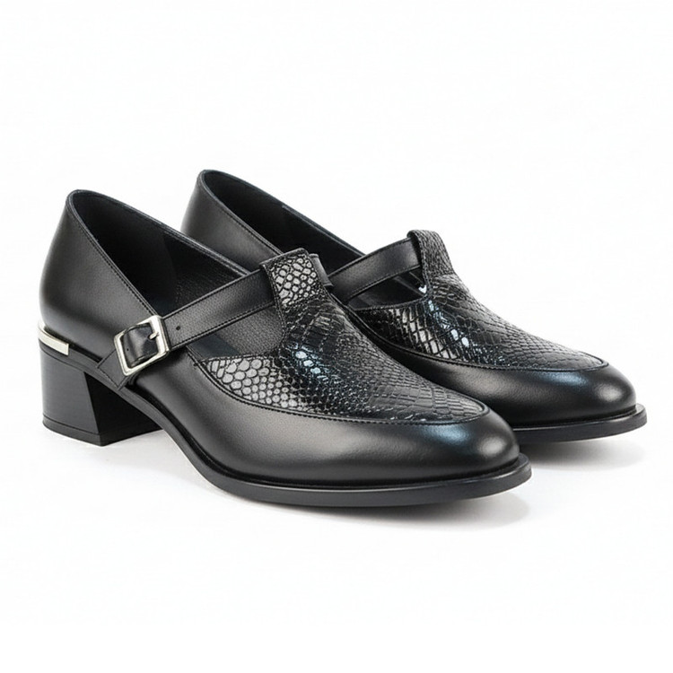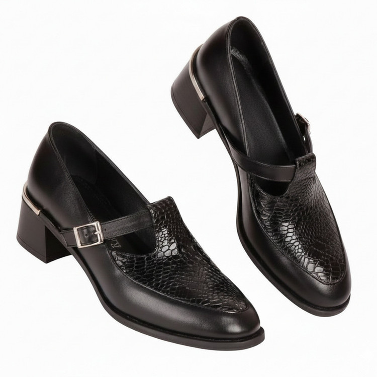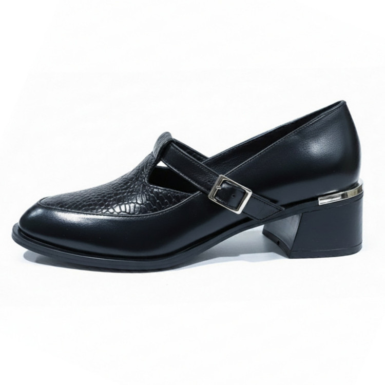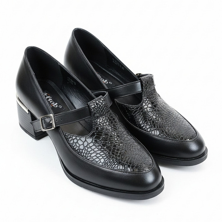 جنس رویه کفش چرم طبیعی مرغوب گاوی طراحی شیک و بروز با رنگ مشکی قابل ست شدن با انواع لباس پاشنه پهن 5 سانتی متری که راحتی و پایداری بیشتری در هنگام راه رفتن فراهم می کند مناسب محیط کاری و اداری ، استایل های کژوال شیک و مراسم نیمه رسمی و دورهمی ها