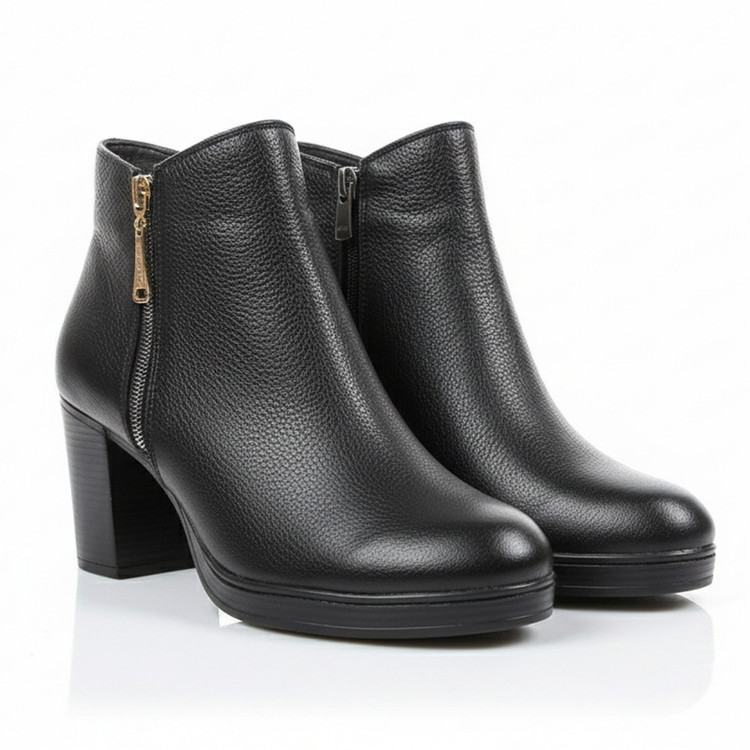 نیمبوتهای چرم یکی از محبوبترین و شیکترین انواع کفشها برای فصول سرد سال، به ویژه پاییز و زمستان هستند این کفشها مچ پا را میپوشانند و برای استایلهای مختلف زنانه و مردانه مناسبند .جنس چرم طبیعی این مدل دوام، مقاومت و زیبایی بالایی دارد و با گذشت زمان نرمتر و زیباتر میشود و تنفسپذیری خوبی دارد. به دلیل پوشش مچ پا و جنس مقاوم، به خوبی پاها را در برابر سرما و رطوبت محافظت میکنند ، این مدل دارای یک پاشنه پهن و مکعبی با ارتفاع متوسط 6 سانتی متر است که ثبات و راحتی بیشتری هنگام راه رفتن فراهم میکند.نوک گرد یا بادامی دارد که مدلی کلاسیک و راحت برای پوشیدن روزمره ، مهمانی و محیطهای کاری است. این نیم بوت دارای زیپ در کناره داخلی است که پوشیدن و درآوردن آنها را راحتتر میکند . اگر بدنبال یک نیم بوت پاشنه دار شیک و بادوام برای فصول سرد سال هستید که با استفاده چندین ساعته در طول روز حس خستگی را به پاهایتان منتقل نکند این نیم بوت چرم طبیعی را انتخاب کنید.